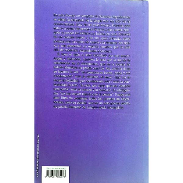 Más que una antología, este volumen incluye prácticamente toda la obra de Wislawa Szymborska. En el prólogo, escribe Elena Poniatowska: "Sus poemas nítidos, aforísticos, nada describen, ninguno se alarga demasiado. Su ironía es precisa, tajante a veces. Más que contar grandes elegías, exalta juguetona, traviesa, las pequeñas y curiosas diferencias que nos determinan".