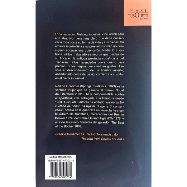 La única idea que Mehring, un industrial cincuentón y aún atractivo para las mujeres, tiene por clara en su vida es la que debe conservar a toda costa su modo de vida. Ni su amante izquierdista, ni su hijo ?un colegial presuntuoso que lleva pelo largo, consiguen socavar su convicción de que tiene el derecho inalienable a seguir en posesión de sus bienes. Y nadie parece cuestionarlo: ni los trabajadores negros que cuidan de su finca en el Transvaal, ni los indios que venden los productos de su tierra, ni los hacenderos boers que le consideran un simple aficionado en los asuntos del campo, ni los negros que viven segregados en ghettos entre la finca y la ciudad. Tan sólo la presencia de un hombre muerto, abandonado cerca de un río, suscita en él cierta inquietud… Como intenso contrapunto a sus recuerdos y fantasías, están las vidas de los que sirven, pero que apenas reparan en él, y también esa otra misteriosa presencia en la serena belleza de la tierra a la que todos se aferran.